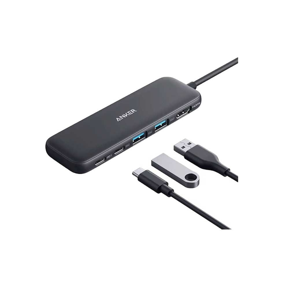 موزع متعدد المنافذ أنكر 5 في 1 منفذين USB-A , منفذ USB-C , منفذ HDMI , منفذ PD IN - رمادي